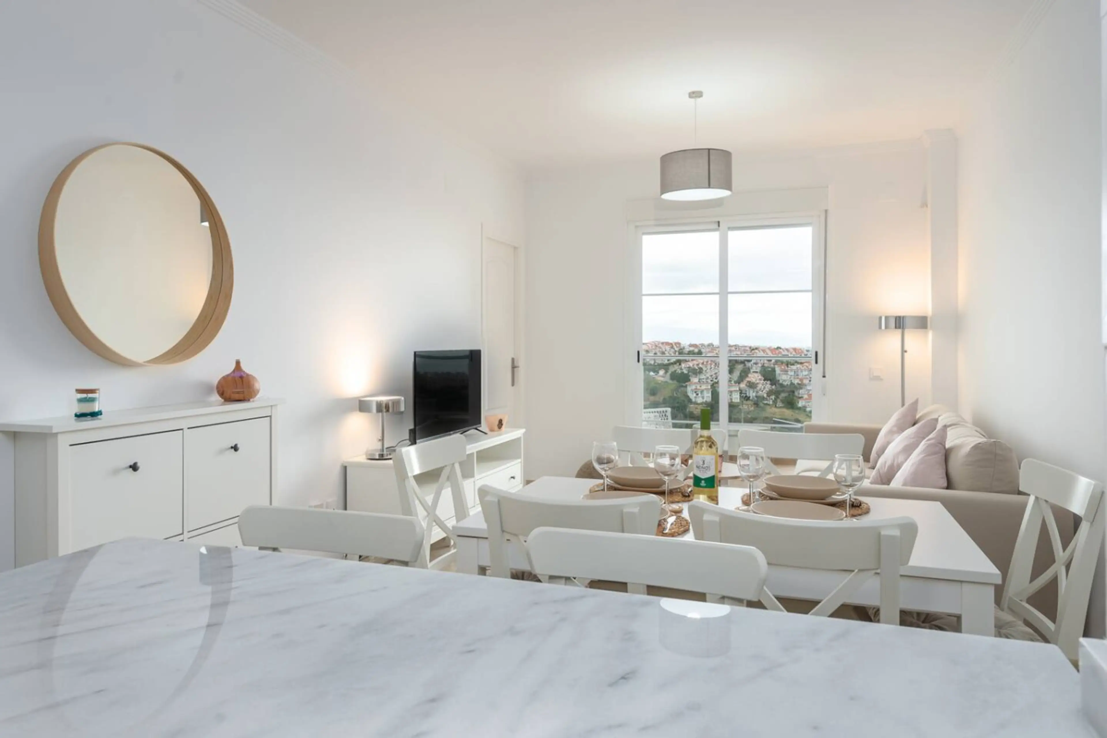 This modern 3-bedroom apartment in a brand new development offers space for 6 people. With 2 queen beds and 2 single beds, it has a fully equipped kitchen, living room with access to terrace and exceptional views. Just 10 minutes from the beach, close to restaurants and supermarkets, with private pa...