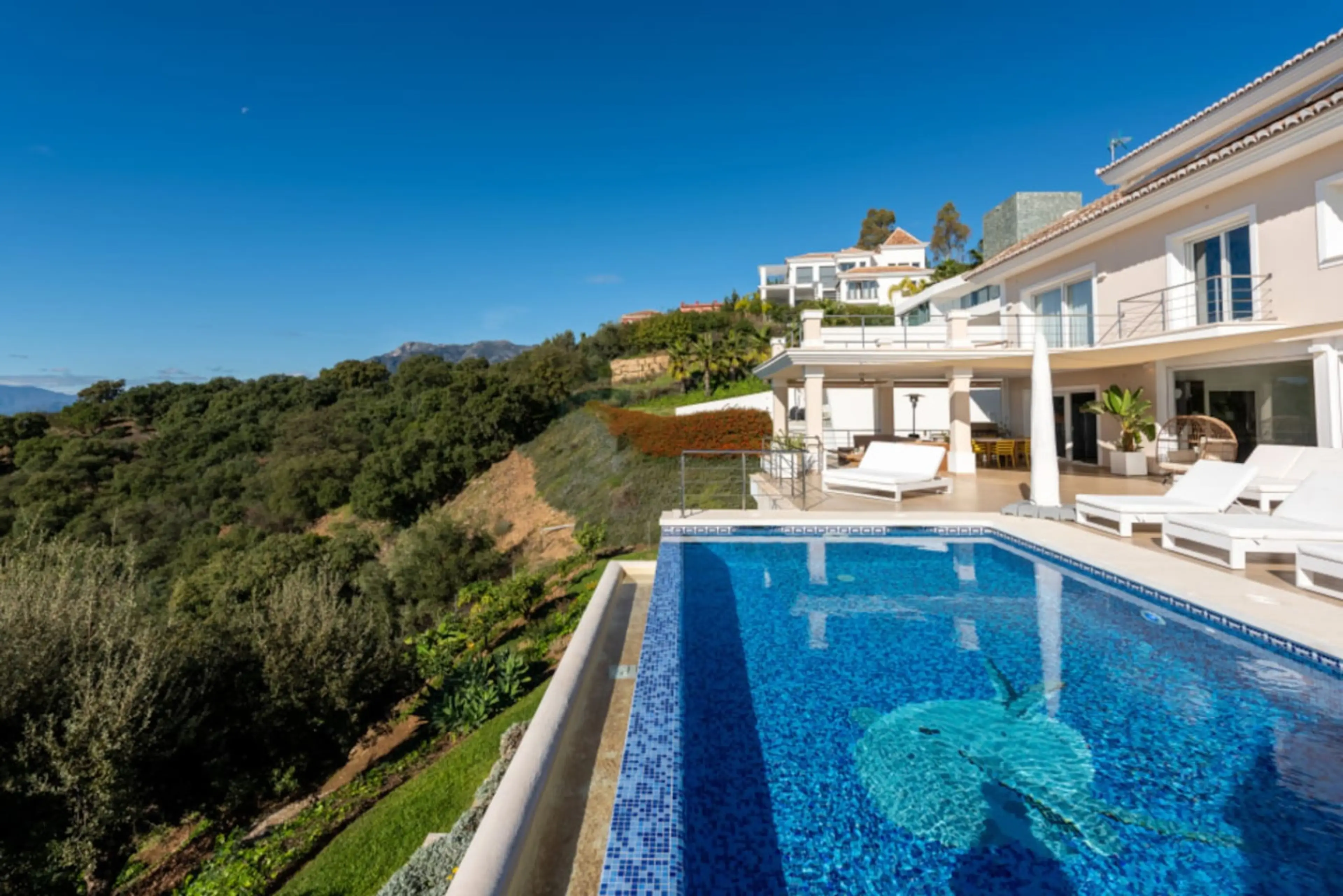 Disfruta del lujo en esta villa en lo alto de Marbella, con capacidad para 12 personas y 5 habitaciones con baño privado. Cuenta con una piscina infinita y terraza con vistas panorámicas. La decoración elegante y cómoda se complementa con una cocina totalmente equipada, lavandería y gimnasio. Ubicad...